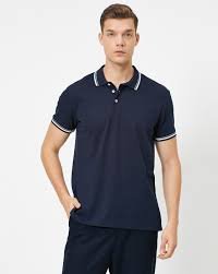 NAVY POLO NECK T SHIRT WITH WHITE TRIMS